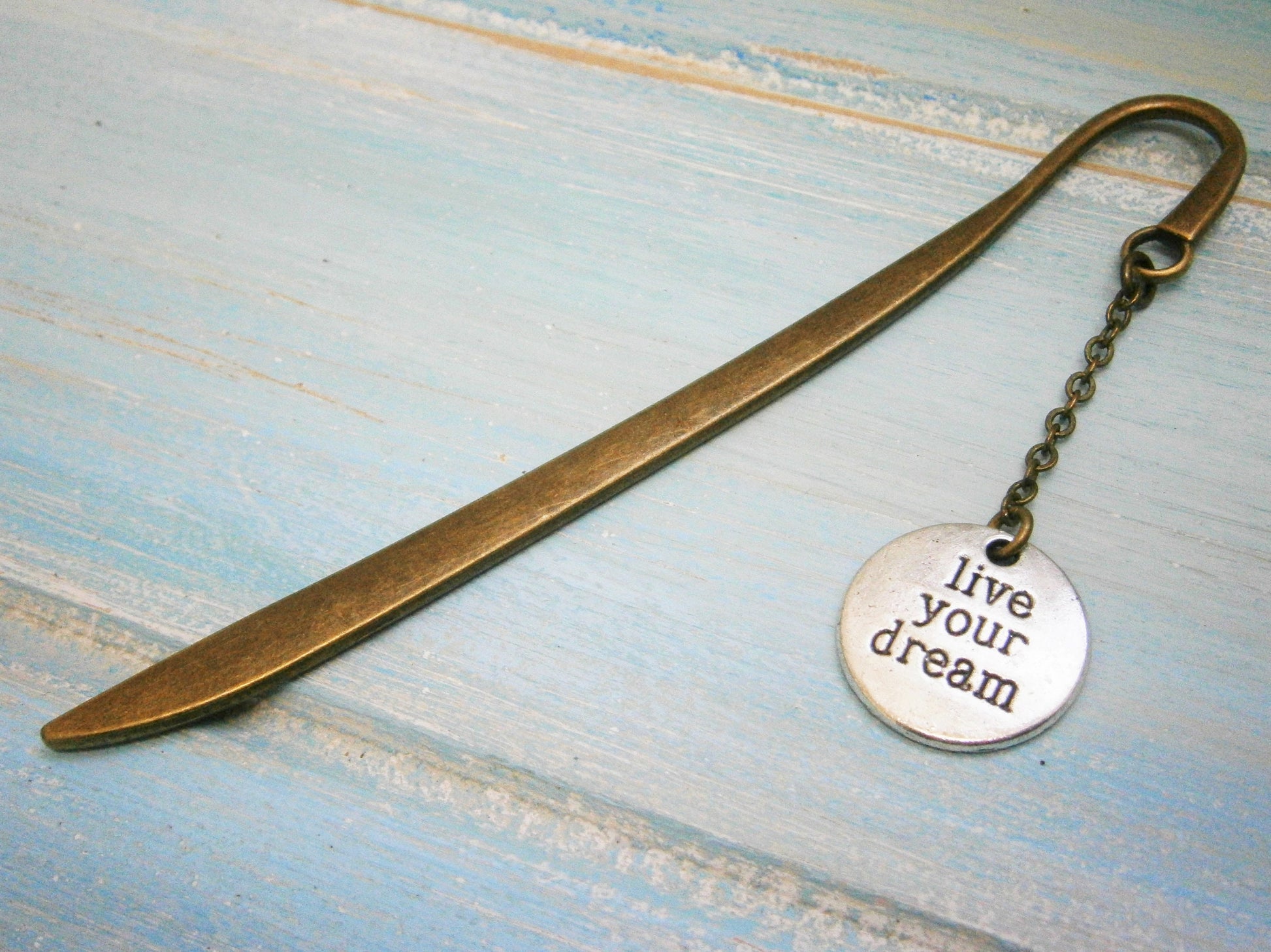 Bookmark with a Antique Silver Live Your Dream Disc/Book Lover Bookmark/Motivation Bookmark/Bookmarks for Books/Book Lover/Bookmark/Gift